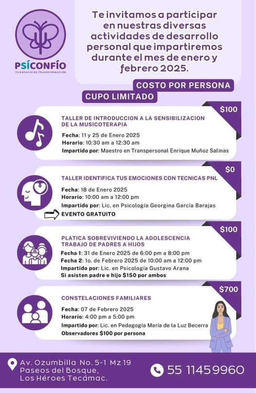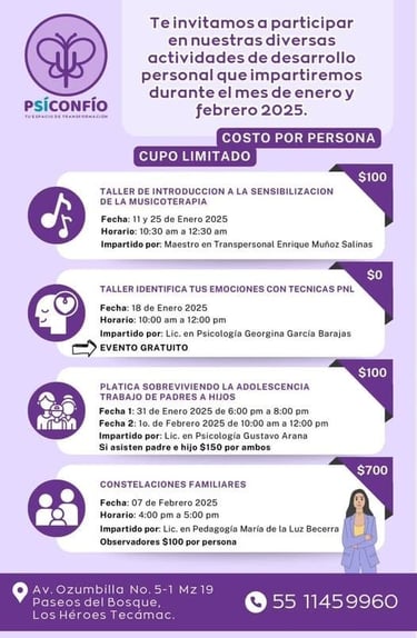 Ofrecemos psicoterapia, talleres y cursos de desarrollo humano.